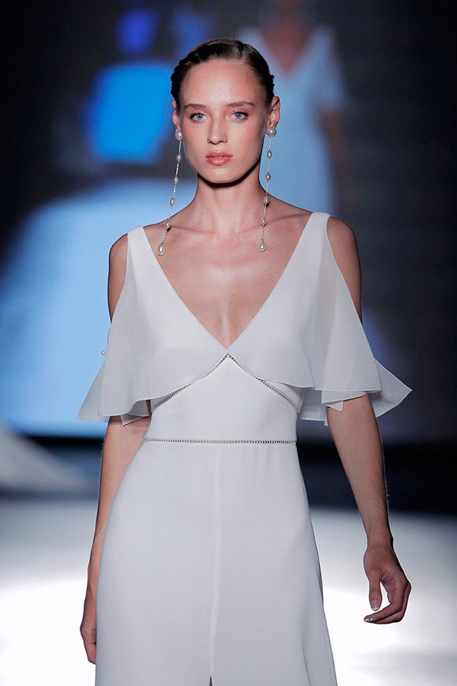 Como complemento ideal y como es habitual en la firma, Rosá Clará apuesta por las joyas con perlas, con pendientes largos donde se estiliza el cuello de la mujer y donde lucen con sus vestidos con perlas cosidas.
